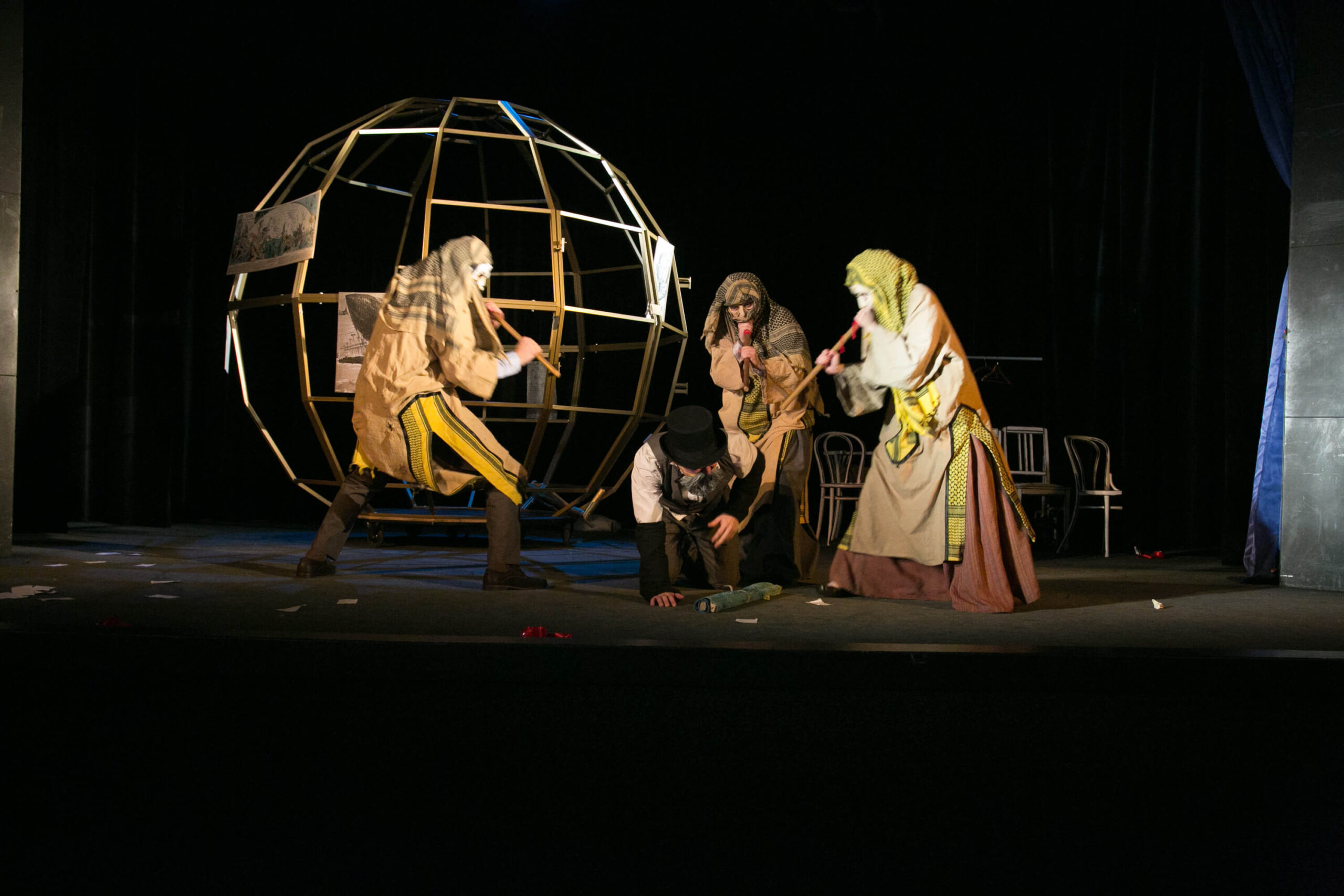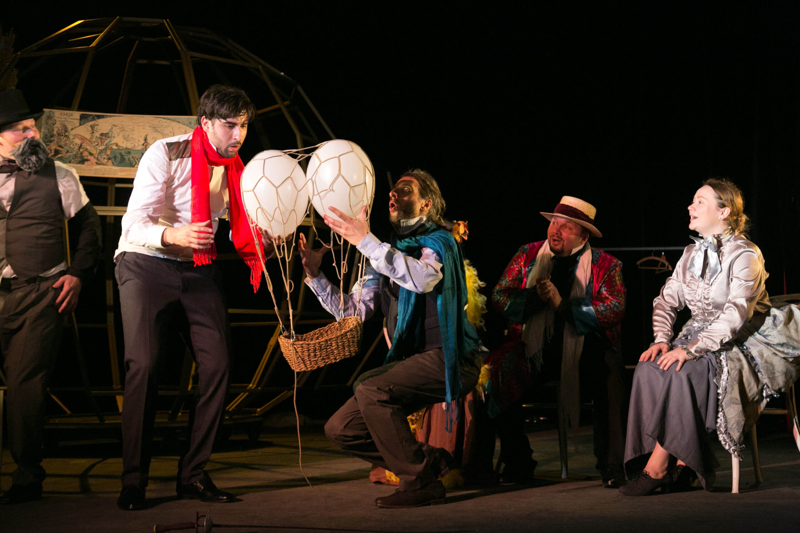 Pět neděl v balóně, 20 000 mil pod mořem nebo Dva roky prázdnin… Na těchto a mnohých dalších dobrodružných románech francouzského spisovatele Julese Verna vyrůstaly a vyrůstají celé generace kluků a holek. Úžasné příběhy neztratily ani po 150 letech nic ze svého kouzla. Ale jaký byl vlastně jejich autor? Jak byl v hlavě jednoho muže spuštěn nekonečný proud imaginace? Na tyto otázky odpoví nová inscenace Ondřeje Lážnovského, který přistoupil k životní pouti francouzského vizionáře bez zbytečné piety. Dal naopak prostor fantazii, které byl Verne jedinečným ambasadorem. A to nejen svojí, ale i zúčastněných herců. Julesovi ve scénáři poskytl čtyři velké rádce, kteří jsou mu nablízku ve všech osudových životních situacích. Na jevišti ho tak doprovází bohyně spravedlnosti Themis, bohyně hvězdářství Uranie, patron námořníků Svatý Mikuláš z Myry a ta možná nejdůležitější – Moderní doba…